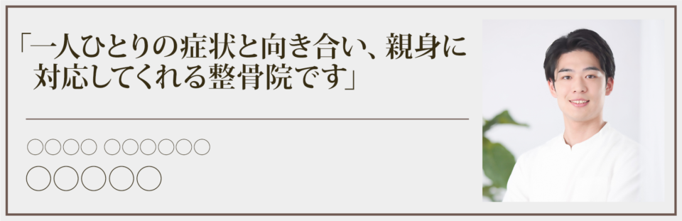 - 口コミ○○件以上!○○市○○区で人気の整骨院