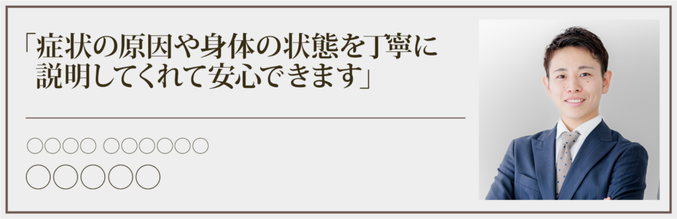 おはな整骨院では、肩こりや腰痛など、それぞれの症状に対して適切な施術を提案してくれます。