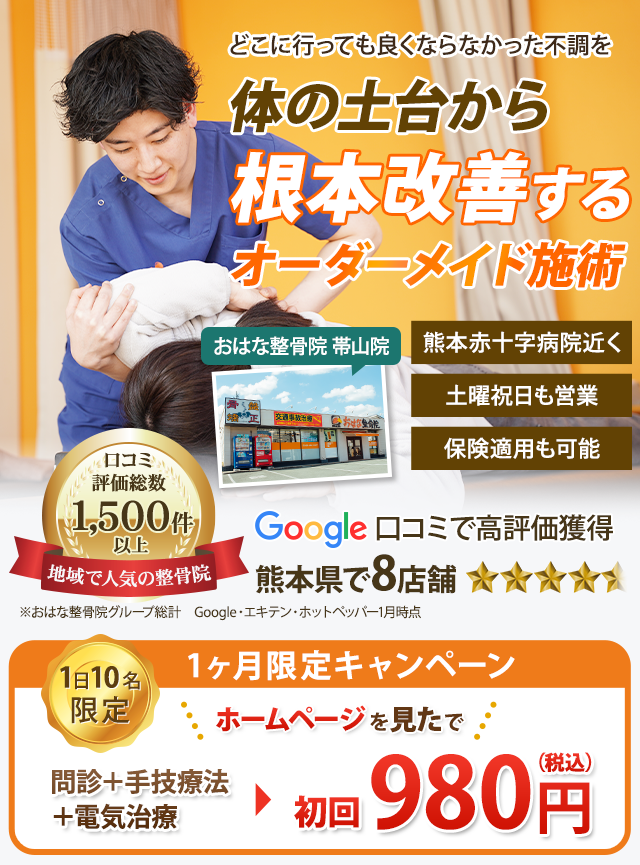 熊本市中央区の整体・整骨院なら【おはな整骨院 帯山院】